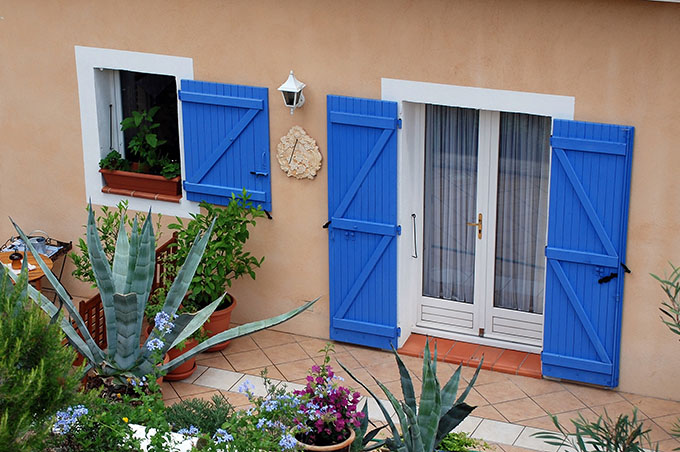 Le vantail est bloqué par une butée amortisseur à ressort et ne vibre plus. Pour libérer le volet, il suffit d'appuyer sur l'arrêt.