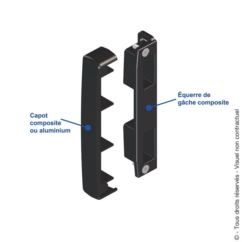 Le capot est en aluminium et l'équerre de gâche en composite, ce qui leur permet d'être plus résistants à la corrosion.