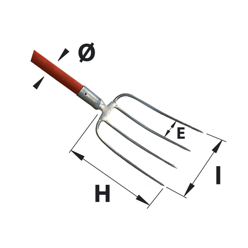 Avec cette fourche à fumier forgée à douille, le ramassage et le déplacement du fumier sont désormais réalisés de manière efficace, sans perte de temps. Avec ses quatre dents protégées en acier, la fourche à fumier pénètre aisément dans le fumier pour une préhension optimale. Le manche en bois, de 130 cm, se distingue par son excellente prise en main et par le fait qu'il offre une hauteur de travail confortable pour la plupart des jardiniers