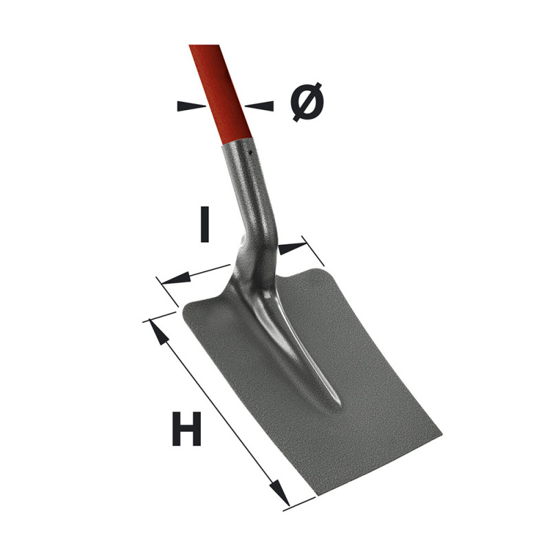 Pelle carrée 23cm. Idéale pour tous travaux de terrassement, pour creuser, déblayer, dégager de la terre, sable, gravier... Tête en acier.