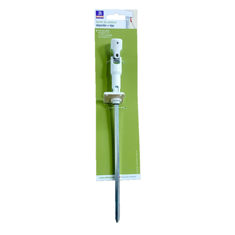 Cette sortie de caisson déportée permet de relier facilement votre treuil à une tringle de manivelle Ø12 mm. Grâce à son déport, elle s’adapte aux installations où l’alignement direct n’est pas possible.